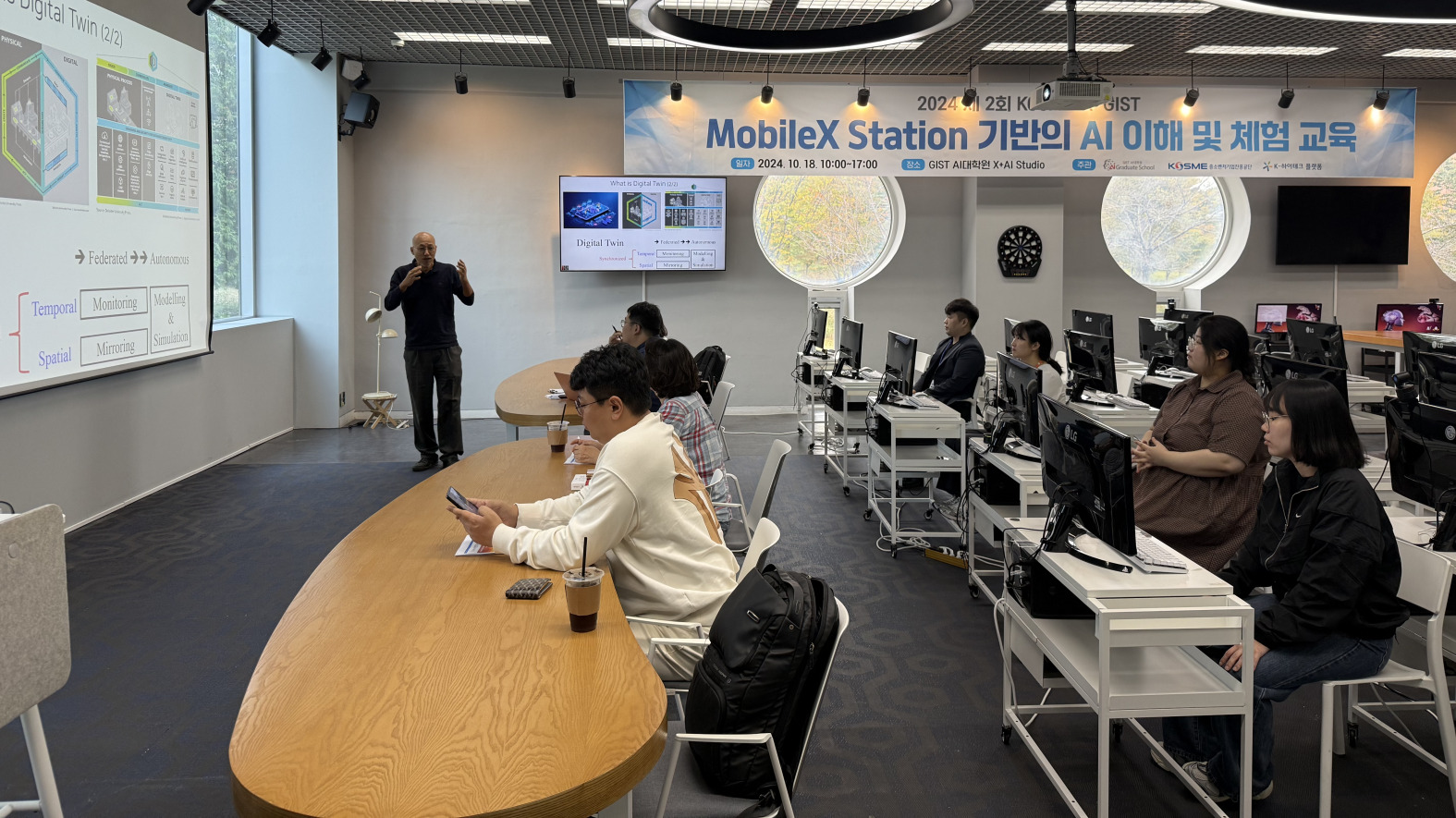 GIST AI대학원에서는 AI 창의자율 특화교육을 목표로 운영한 다양한 실습 기반 교육 프로그램을 진행합니다. 각 훈련은 학습자의 수준과 교육 목적에 따라서 맞춤 설계되었으며 생성형 AI, 디지털 트윈, 자율주행, LLM 등 최신 기술을 활용한 이론과 실습이 진행되었습니다. 교사 연수부터 학생을 대상으로 한 캠프, 산업 실증형 교육까지 다양한 형태의 훈련을 통해 실질적인 기술 이해와 창의적 문제 해결력을 높이는 데 초점을 맞추고 있습니다.